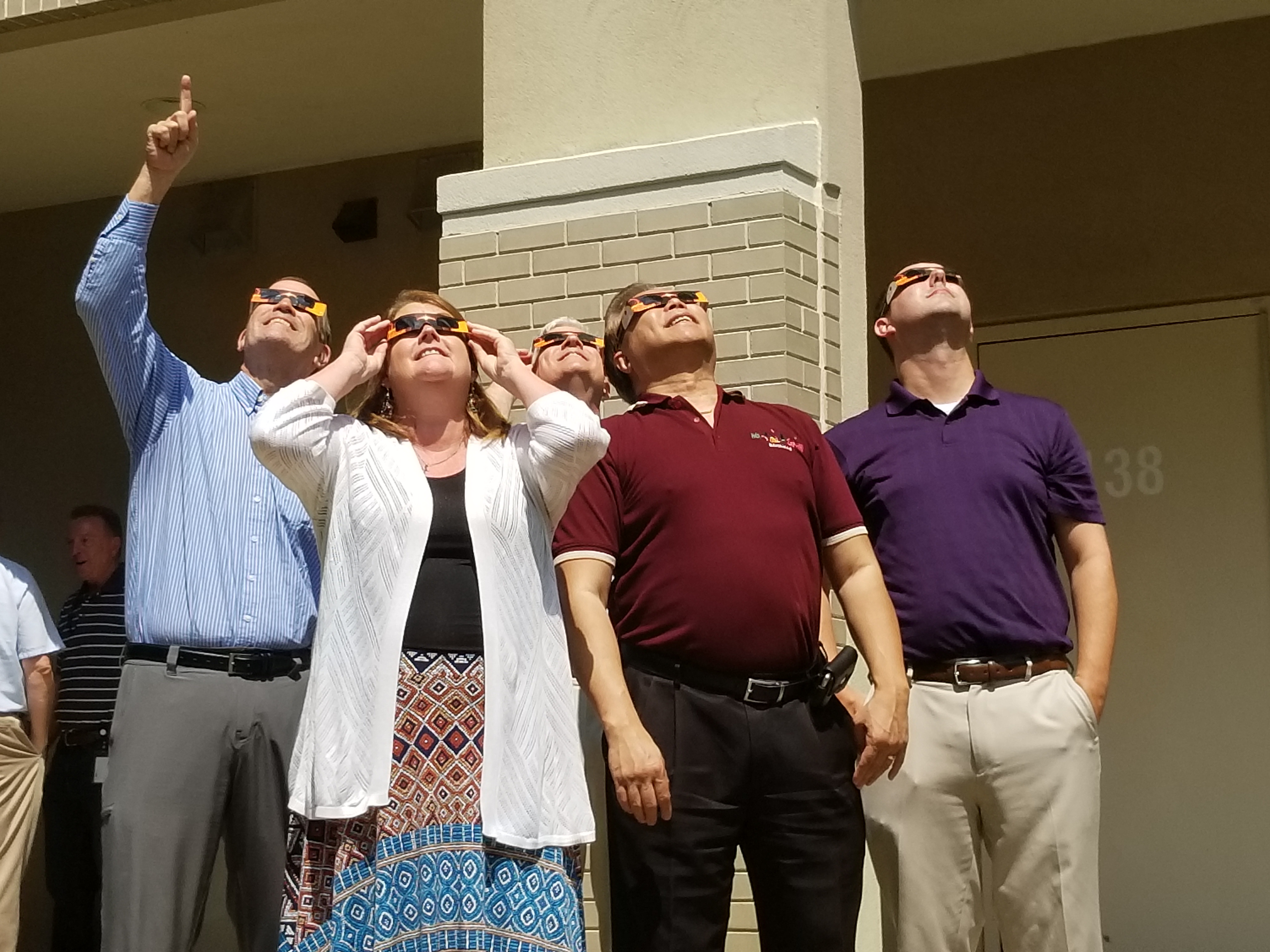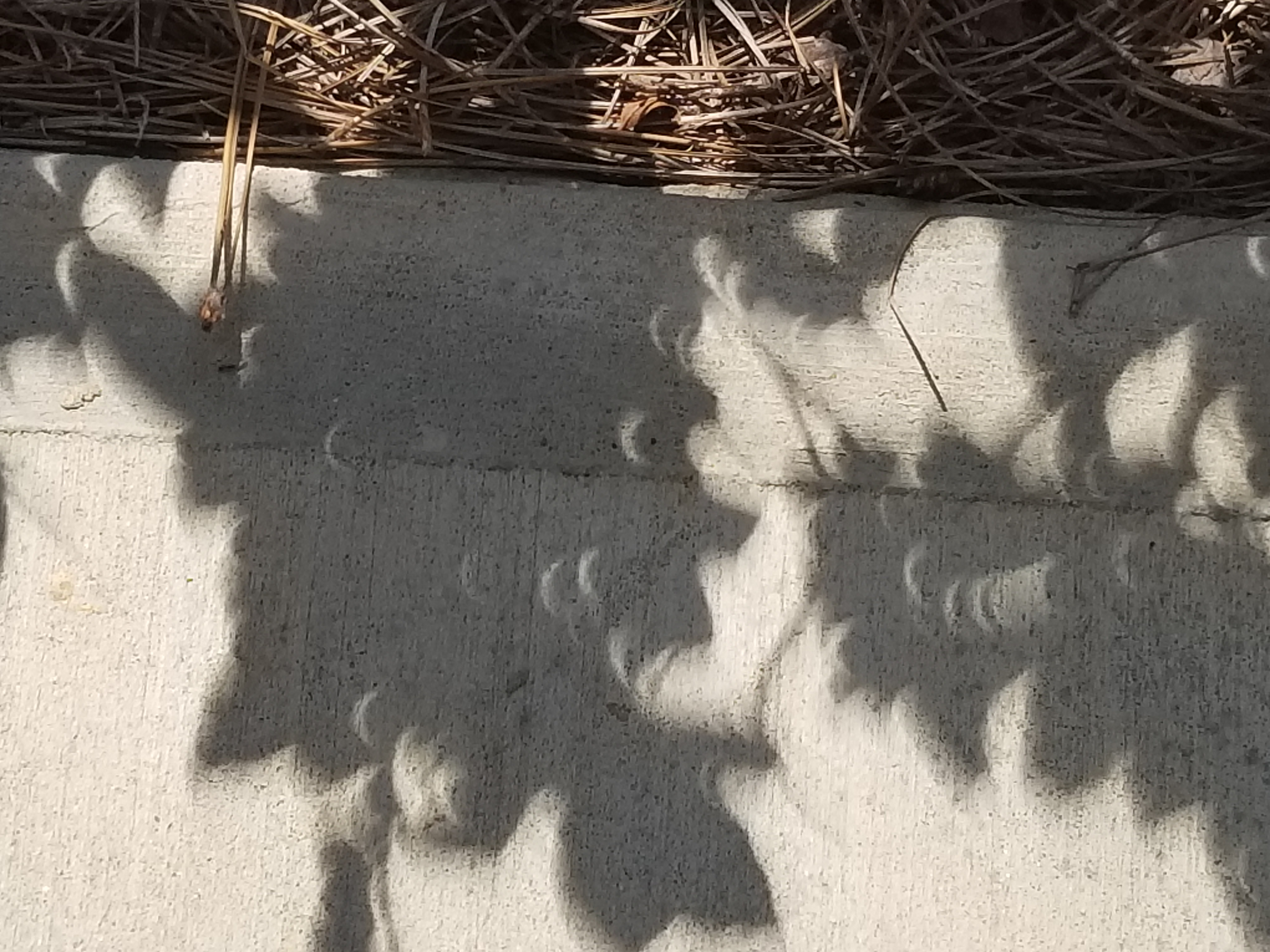 At around 2:44 PM today, the Arris Partners team got to participate in a viewing of the partial eclipse. This was the first total eclipse to run coast to coast in nearly a century. The total eclipse began in Oregon and ended in Charleston, SC. The totality of the eclipse lasted approximately 2 minutes and it took 90 minutes for it to travel from coast to coast. We had viewers around Raleigh and we even got a picture of the mini-eclipses on the concrete.
